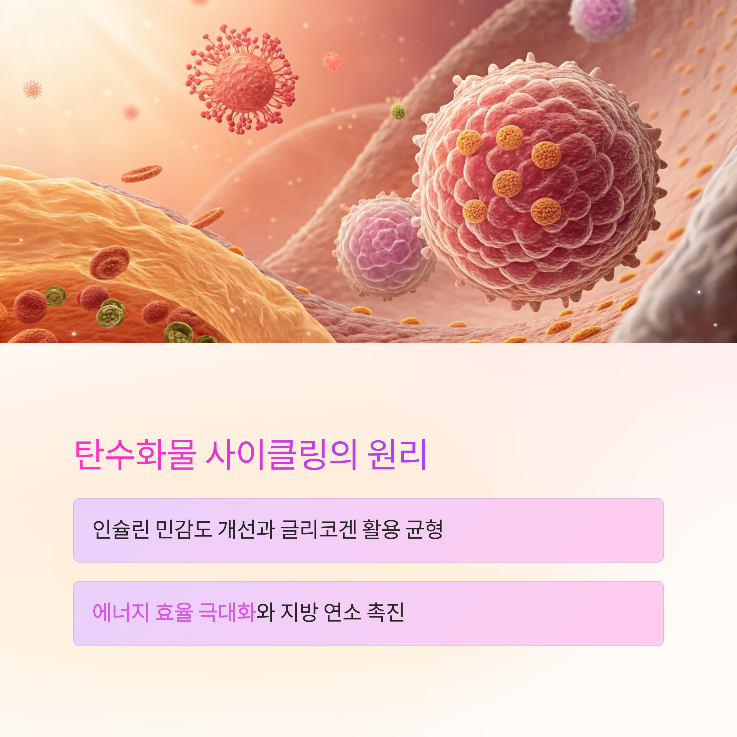 탄수화물은 우리 몸의 주요 에너지원입니다. 하지만 과도하게 섭취하면 지방으로 저장되고, 부족하면 운동 성과가 저하됩니다. 탄수화물 사이클링은 인슐린 민감도를 개선하고, 글리코겐 저장과 소모의 균형을 맞추는 원리에 기반합니다. 이를 통해 에너지 효율을 극대화하고, 체지방 연소를 촉진합니다.