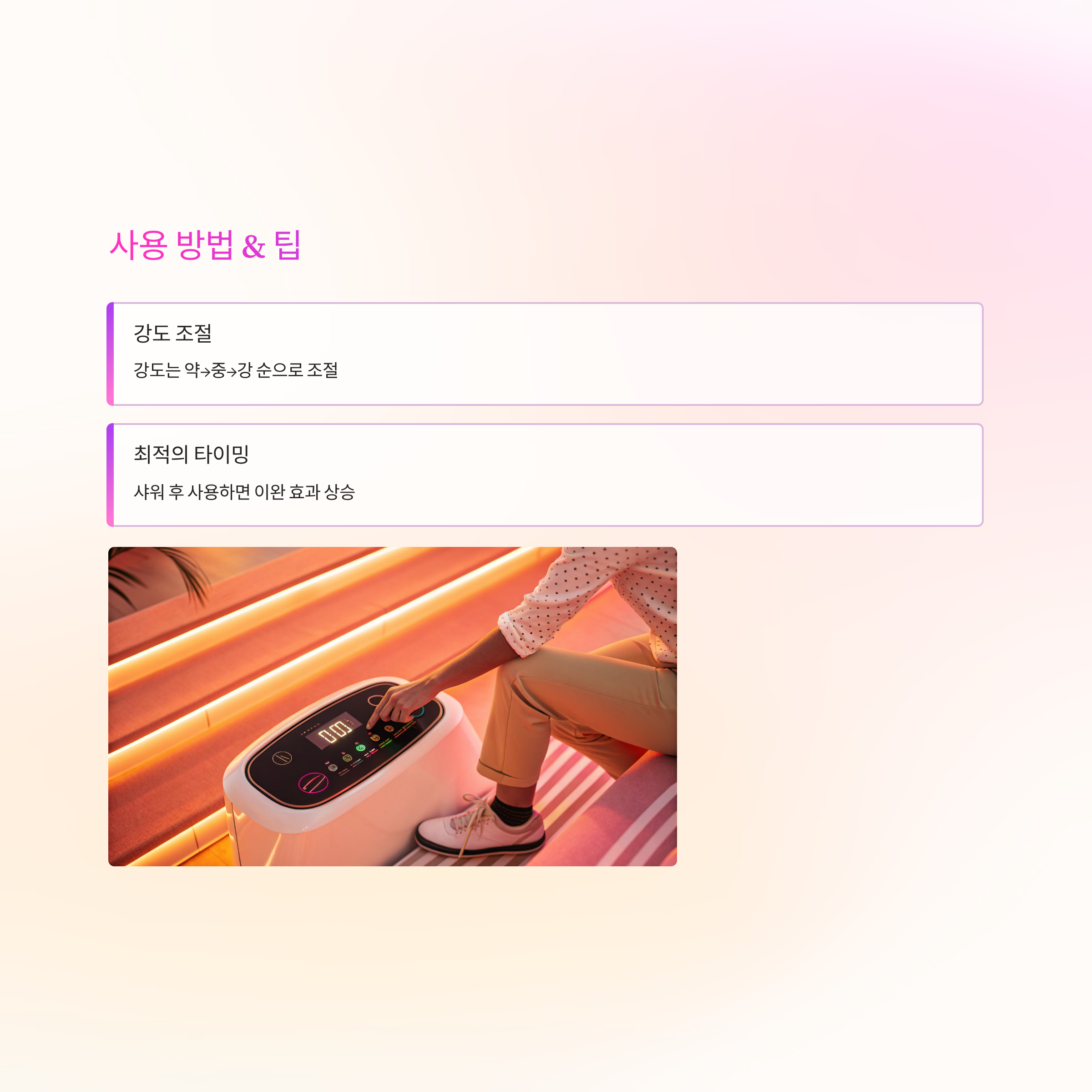 꾸준히 사용하면 하루의 피로를 빠르게 풀고, 다음 날 컨디션까지 개선됩니다.