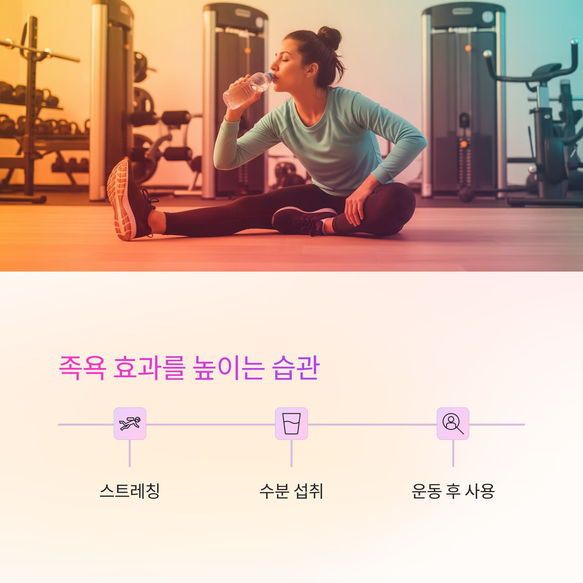 근육 긴장을 완화시키고 혈류를 개선해 피로 회복을 빠르게 합니다.
