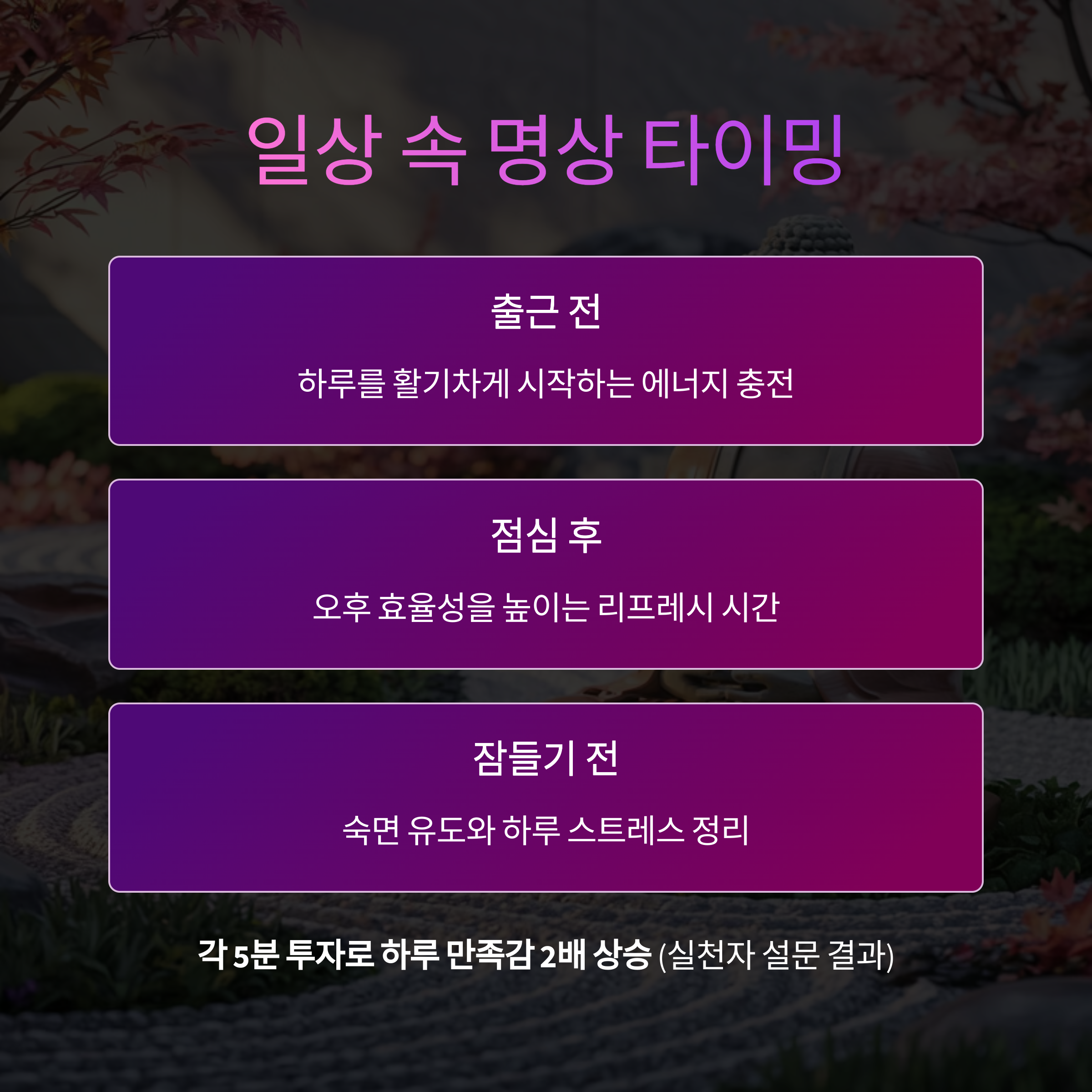 일상 속 명상 타이밍 - 출근 전, 점심 후, 잠들기 전의 황금 시간