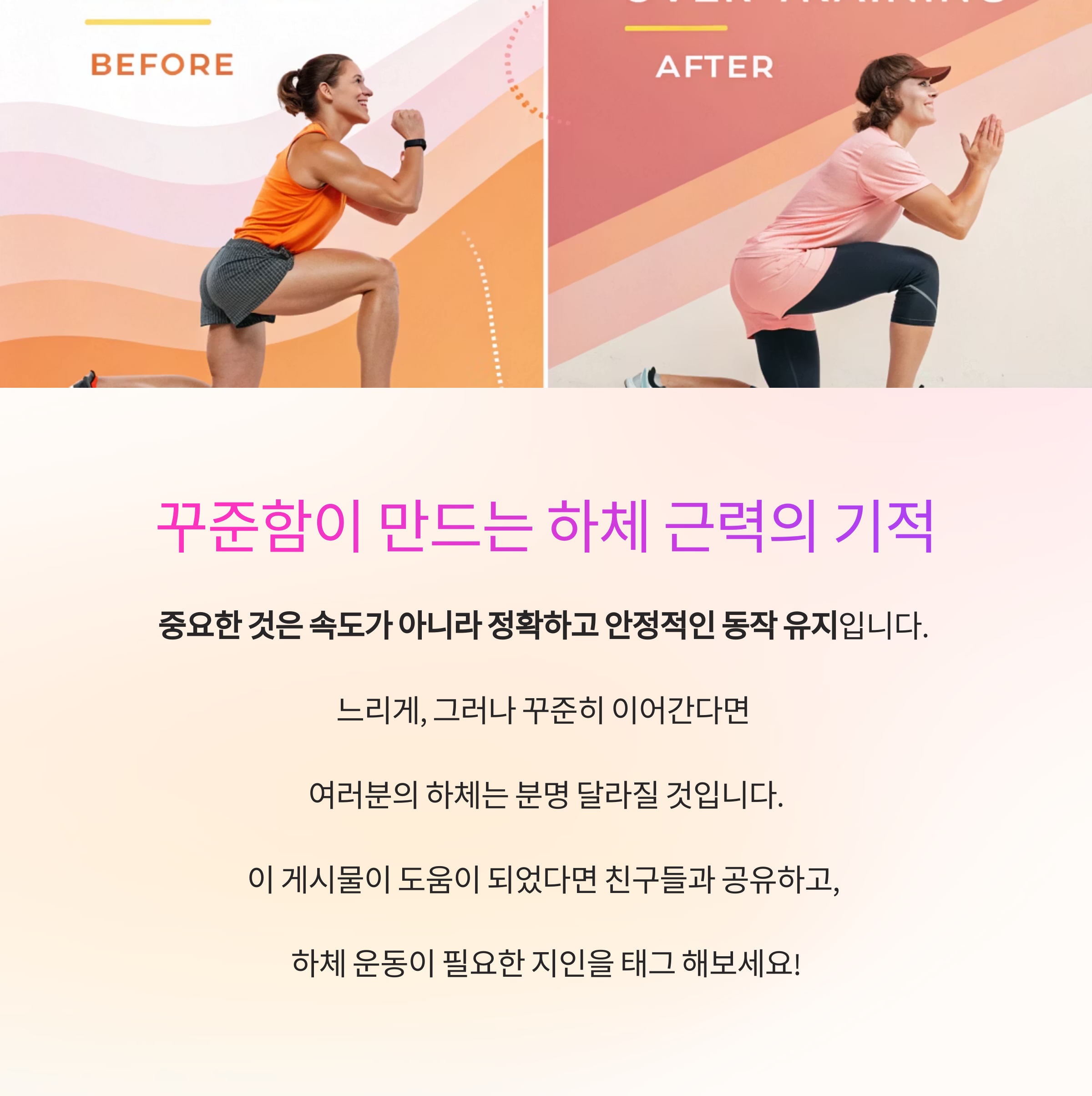 느리게, 그러나 꾸준히 이어간다면 여러분의 하체는 분명 달라질 것입니다.