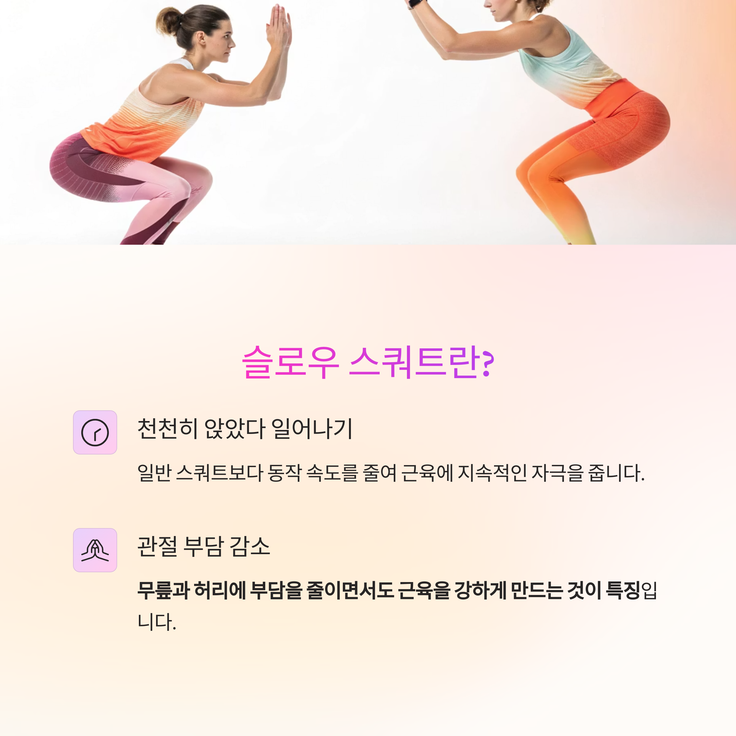 "스쿼트하면 무릎 아픈 운동인 줄 알았어요."