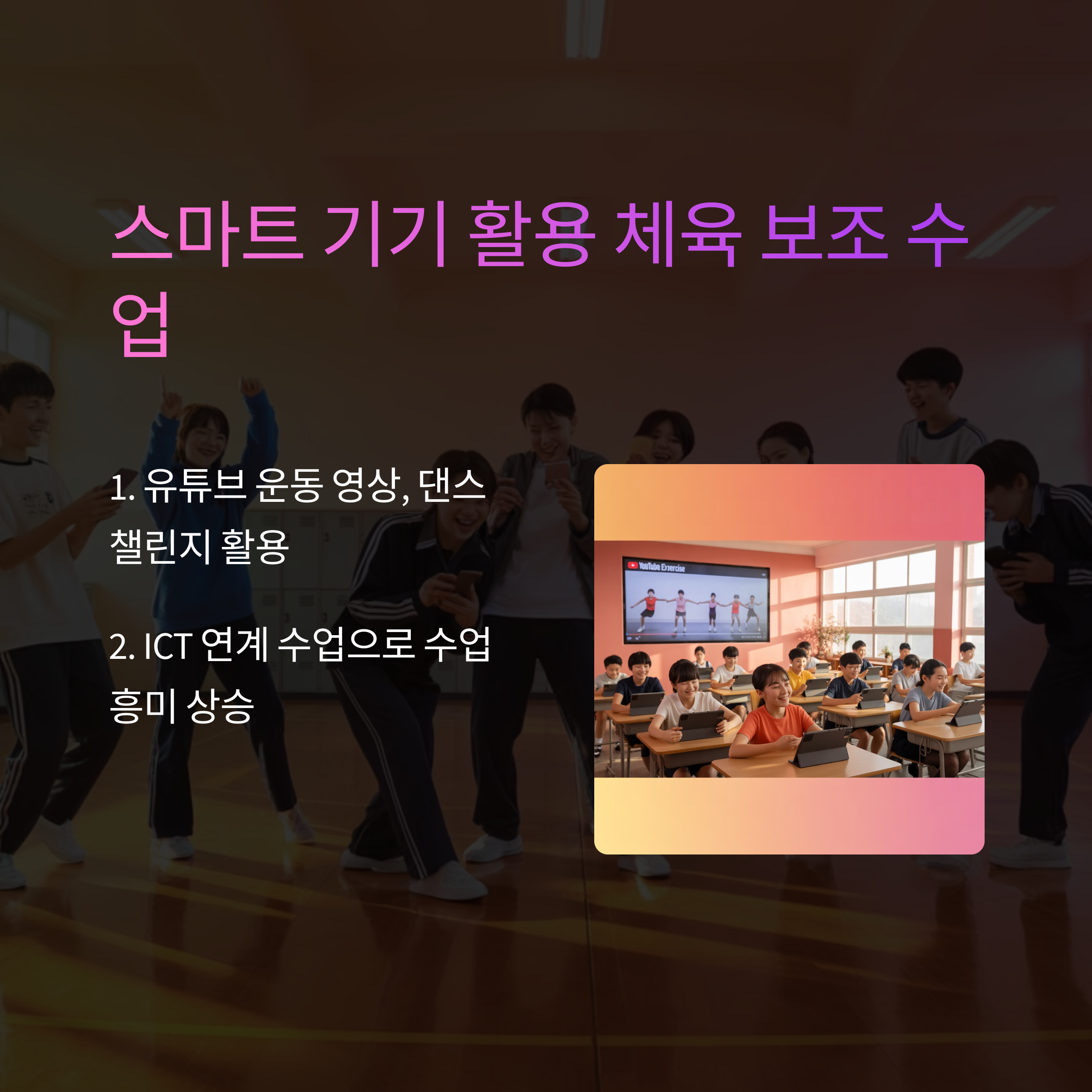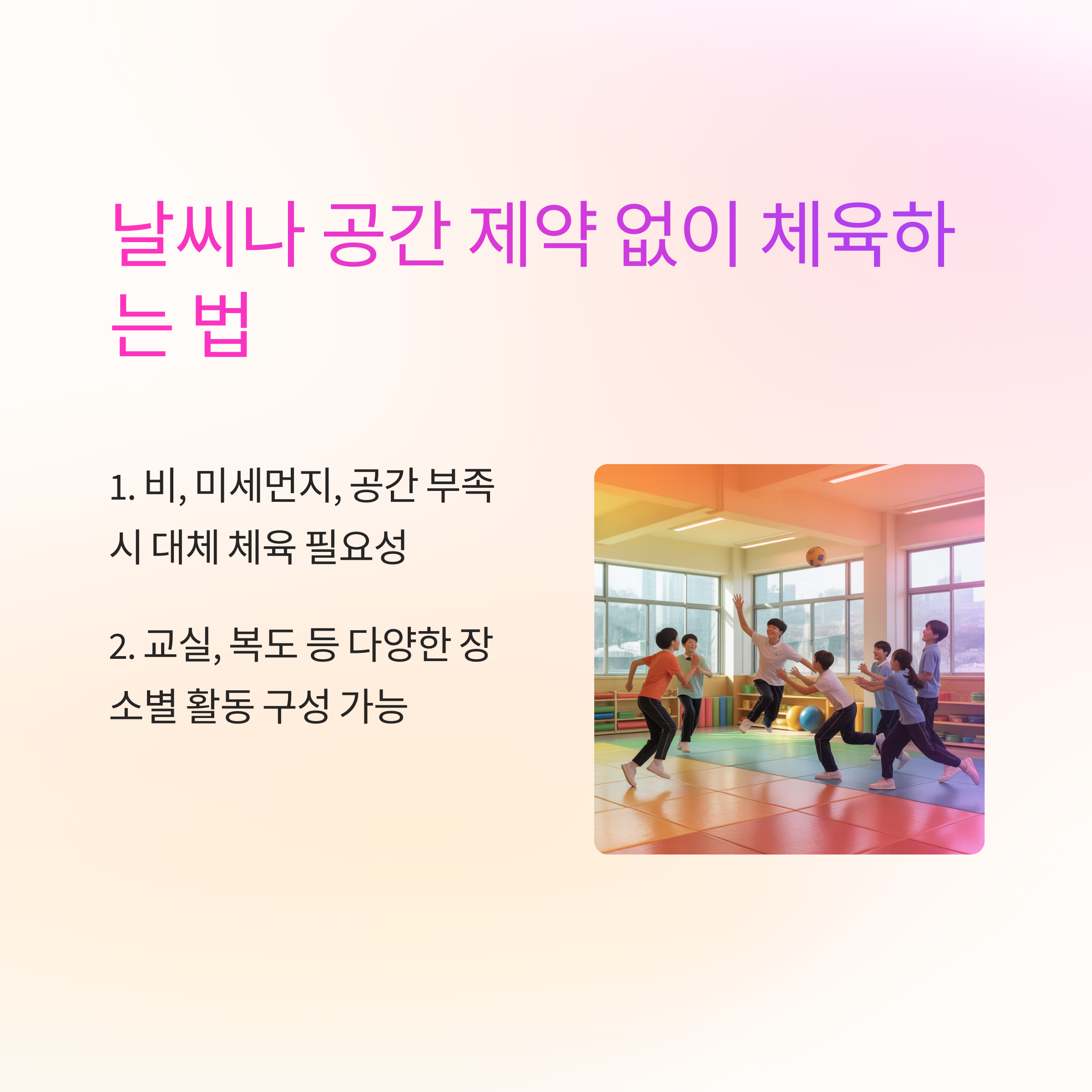 날씨나 장소에 구애받지 않고, 누구나 즐겁게 참여할 수 있는 체육 수업을 위해