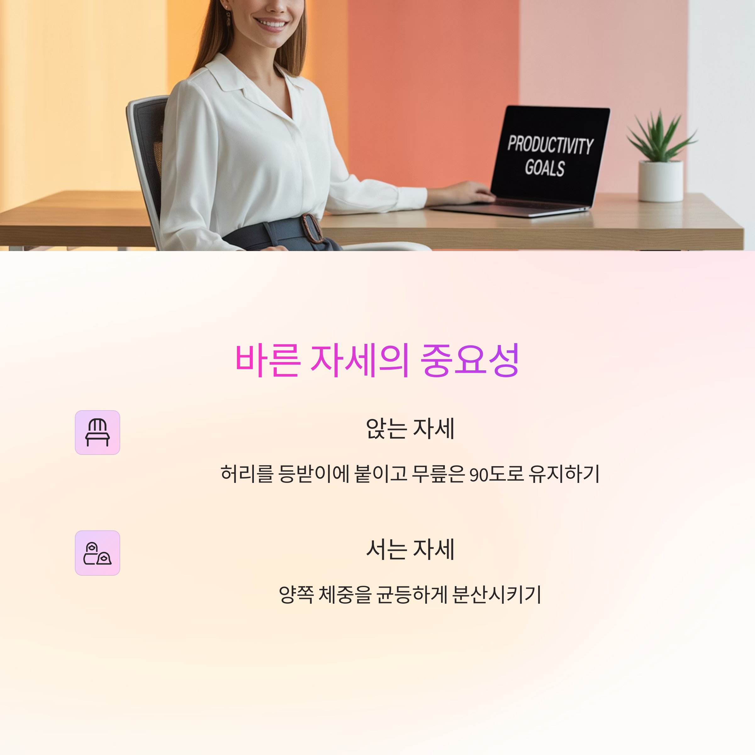 앉아있는 시간이 긴 현대인에게는 자세가 곧 건강입니다.