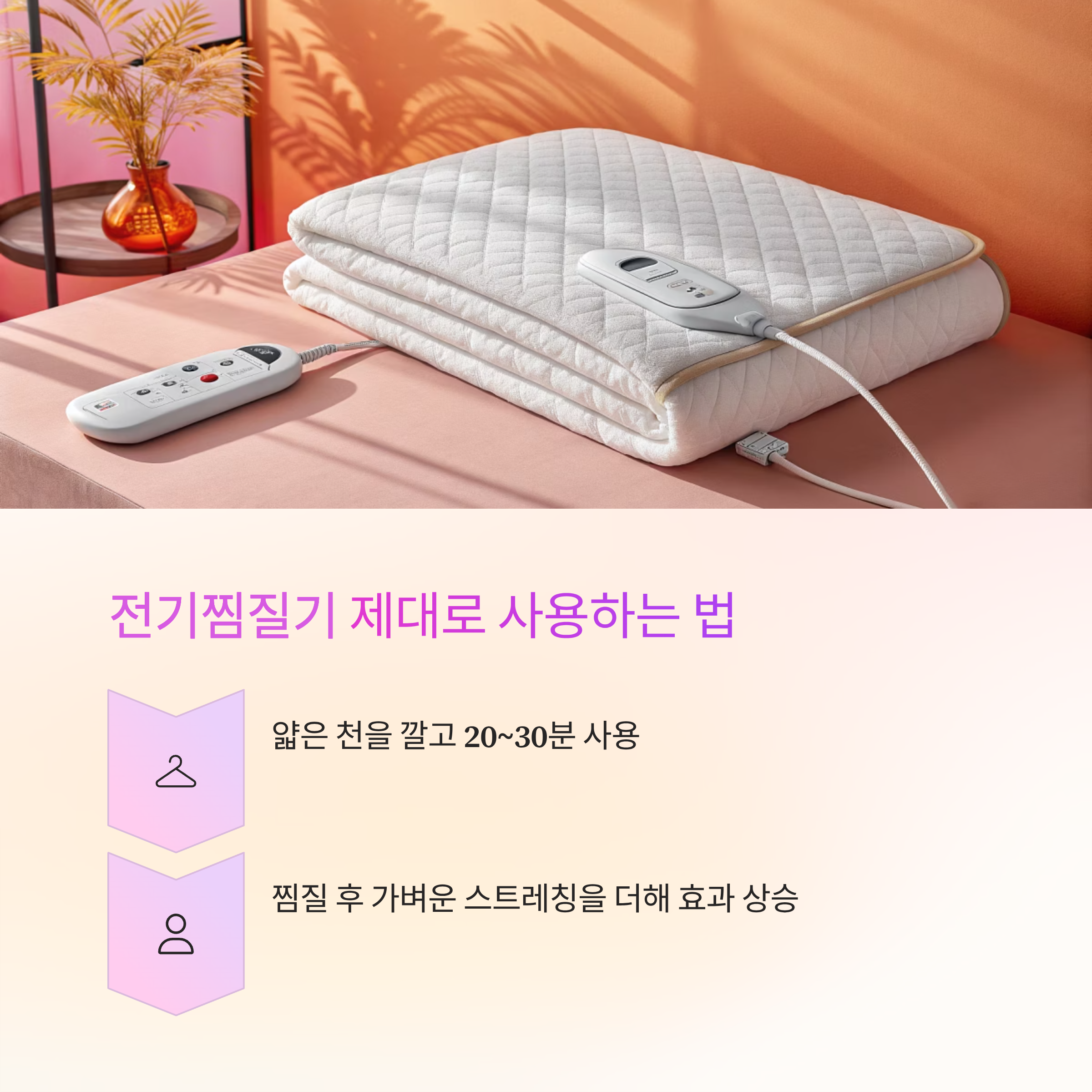 오늘은 전기찜질기의 원리부터 정확한 사용방법, 사용 타이밍, 주의사항까지 전부 정리한 완성형 가이드를 준비했습니다.