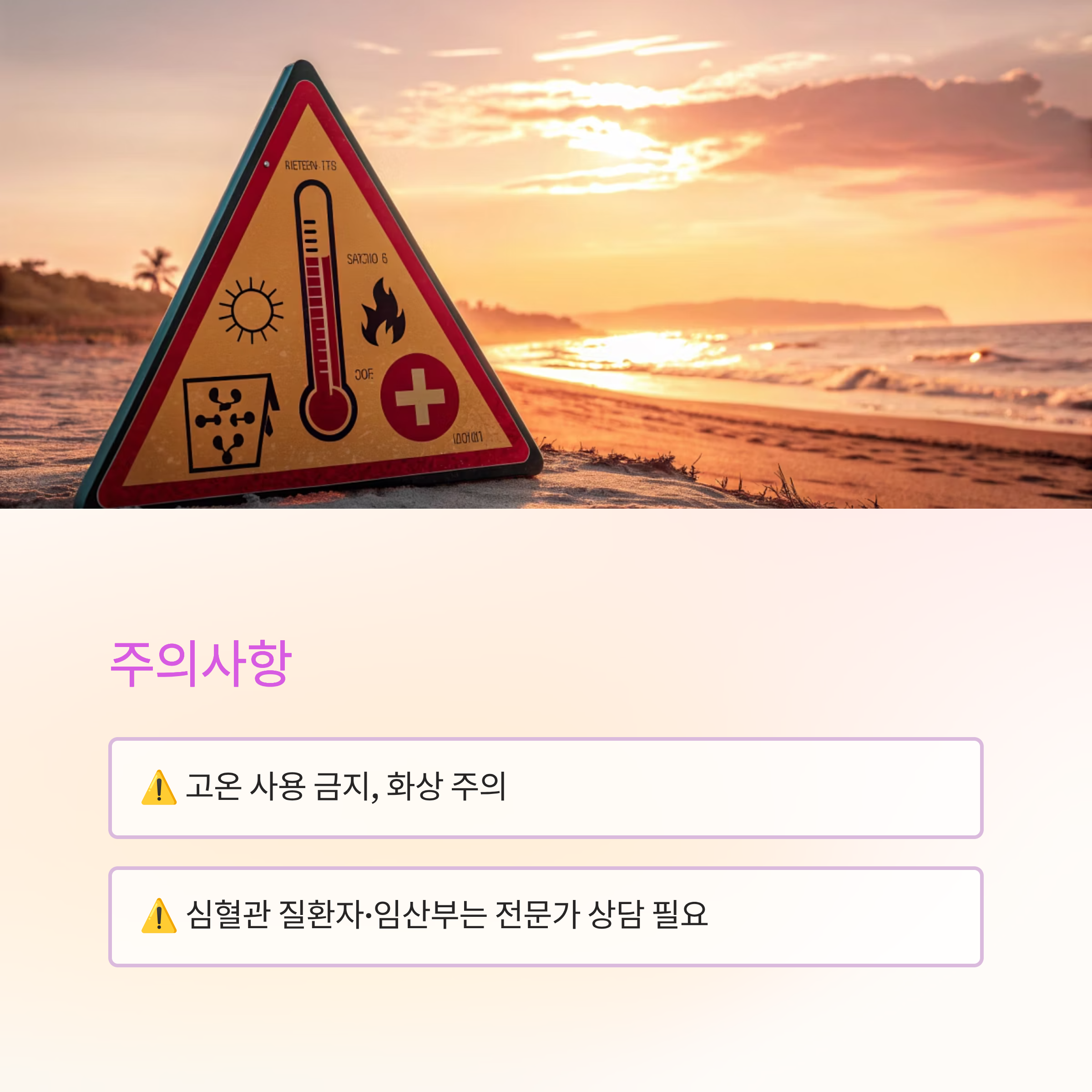 전기찜질기는 안전하게 사용하면 매우 유용한 회복 도구지만 주의해야 할 사항도 분명히 존재합니다.