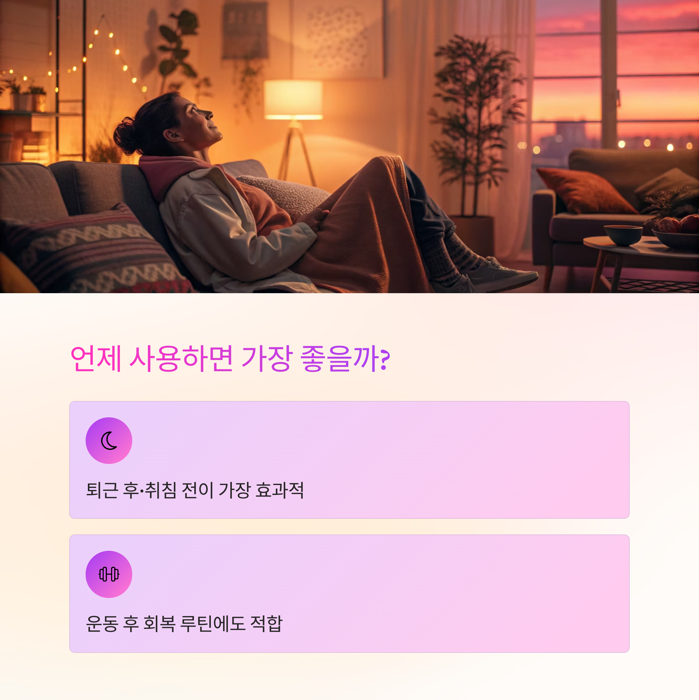 ✔ 아침 기상 후 허리가 뻣뻣할 때 사용하면 하루 전체 움직임이 편해집니다.