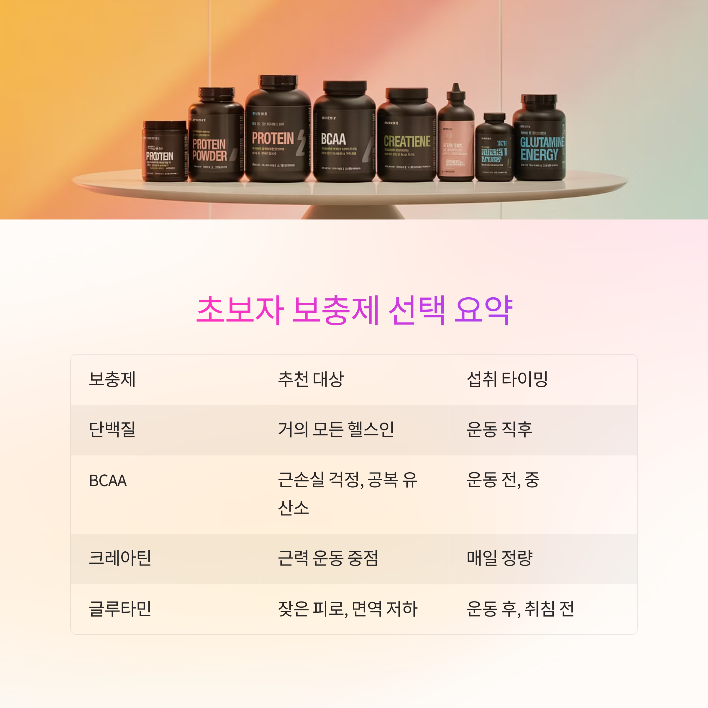 보충제는 음식이 아니라 ‘운동의 연장선’입니다. 정확히 알고 먹어야 효과가 보입니다.