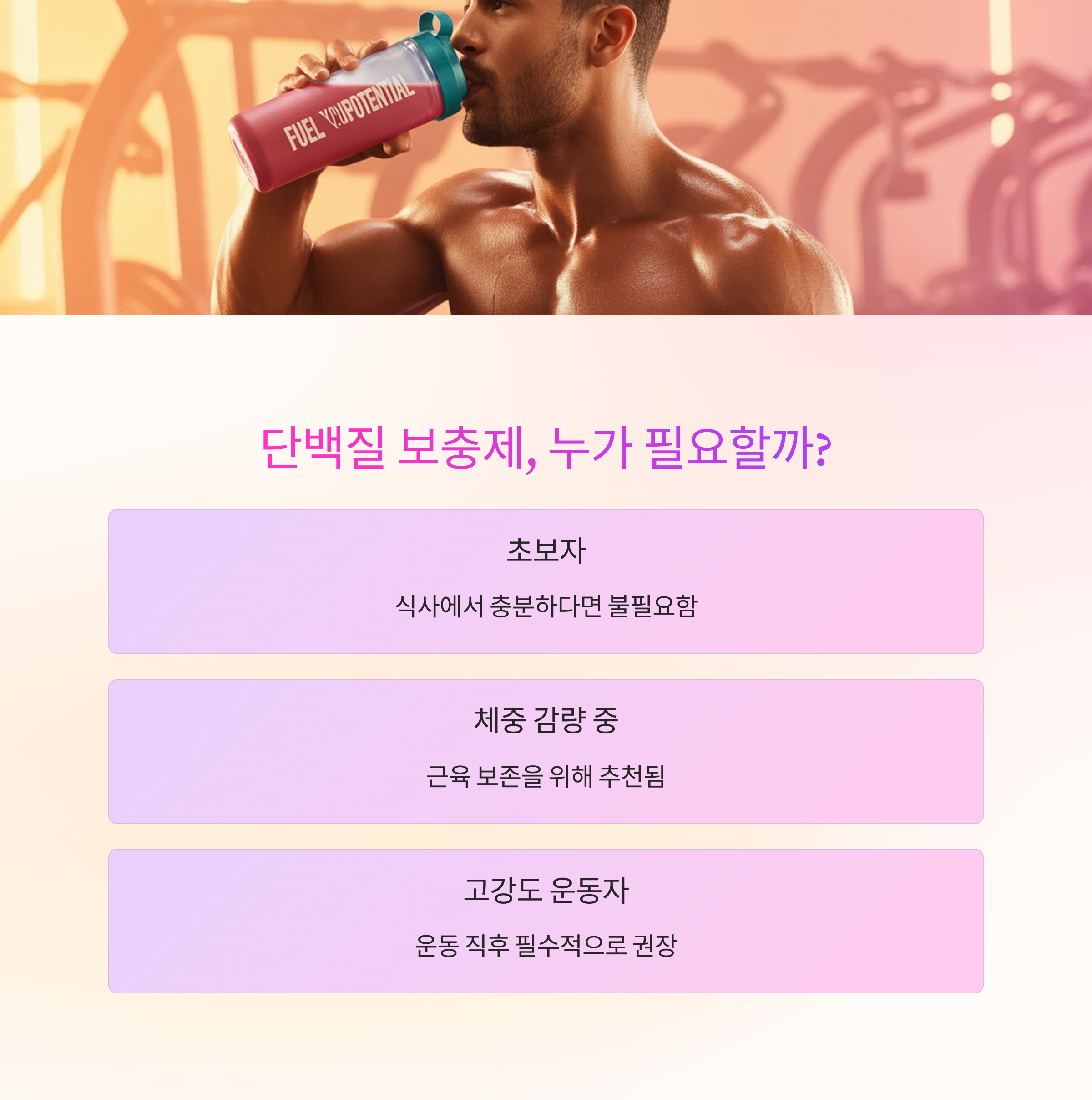 "단백질을 꼭 보충제로 먹어야 하나요?"입니다.