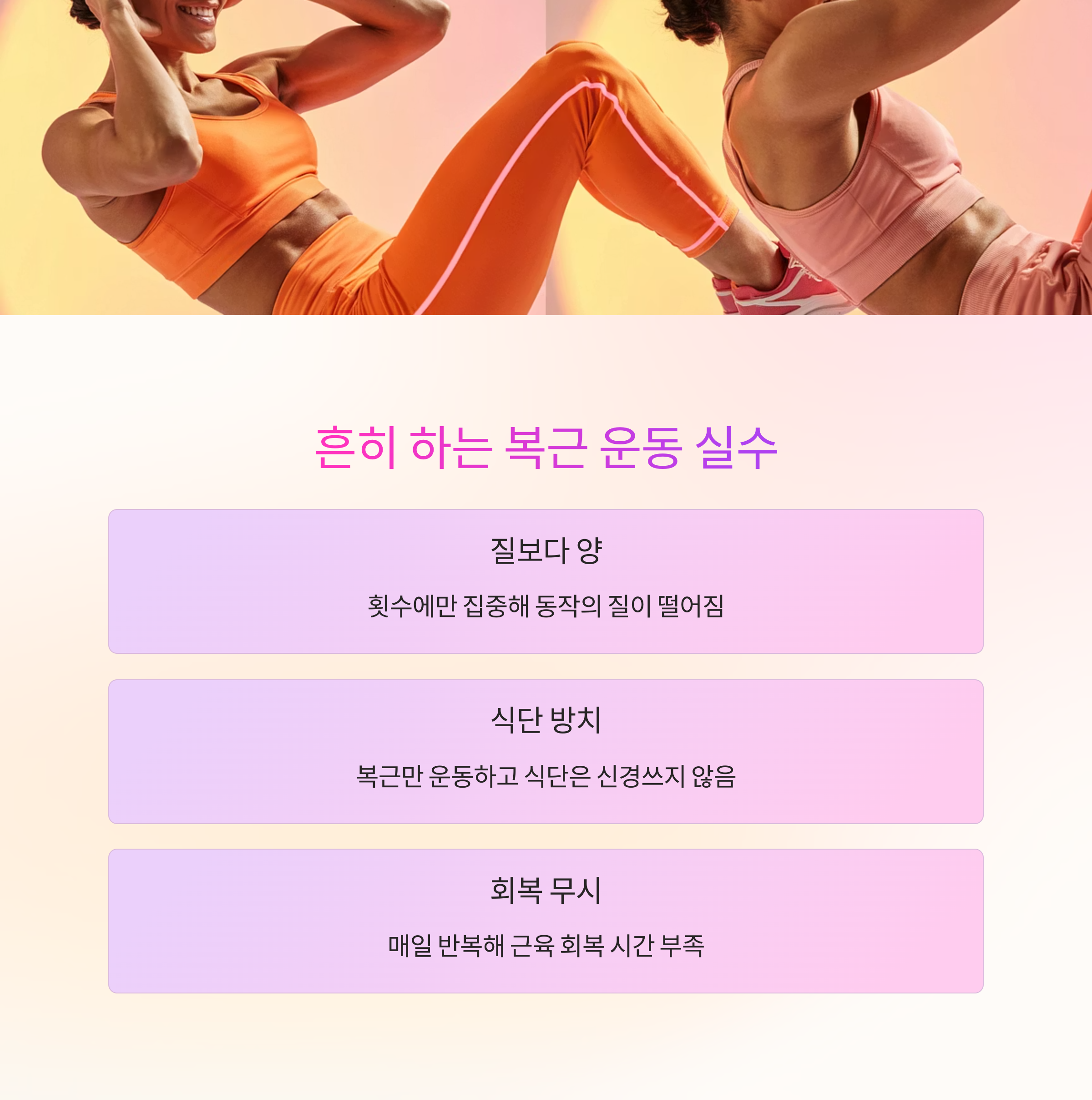 복근도 근육입니다. 과도한 반복은 오히려 성장을 방해할 수 있어요.