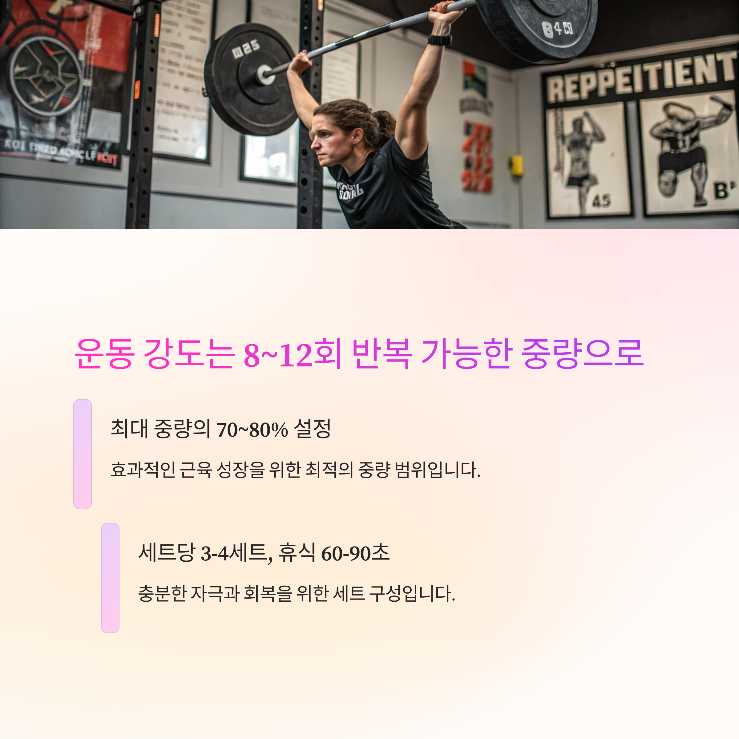 🏋️♂️ 운동 강도는 8~12회 반복 가능한 중량으로
