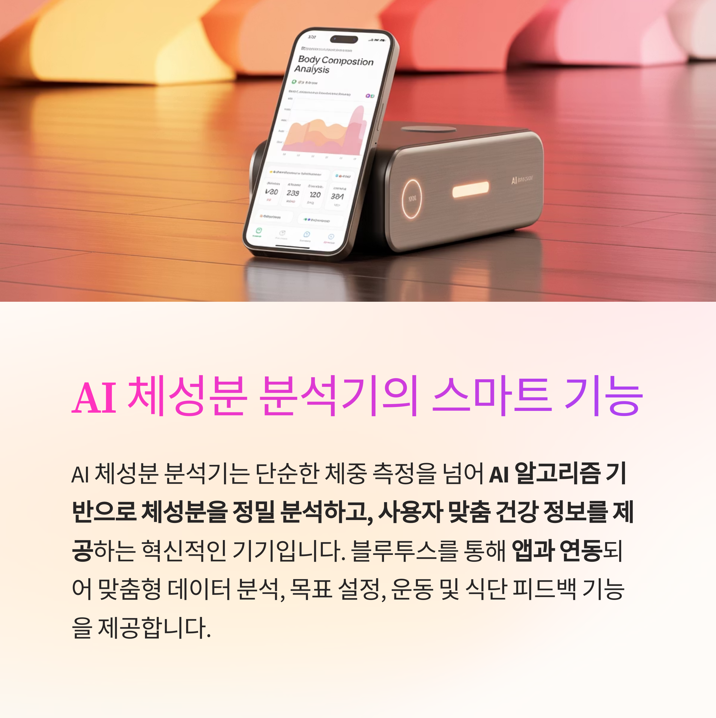 AI 알고리즘 기반으로 체성분을 정밀 분석하고, 사용자 맞춤 건강 정보를 제공하는 기기입니다.